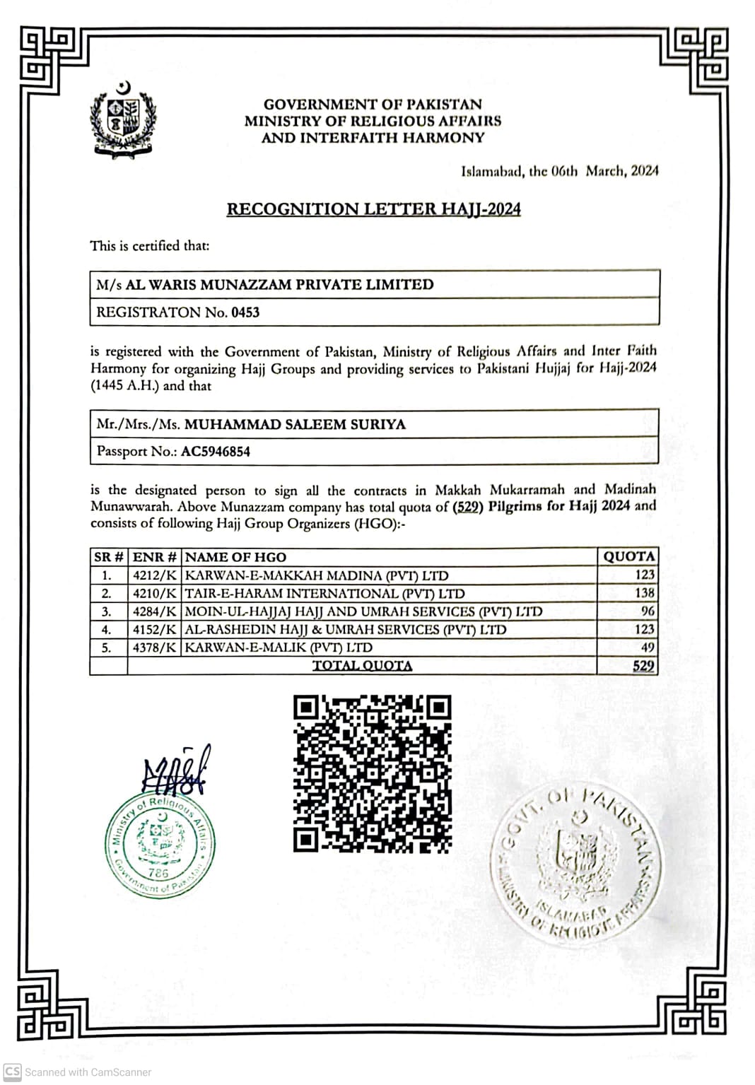 📢 تازہ ترین اپ ڈیٹ: الحمدللہ! حج کوٹہ مکمل ہو چکا ہے۔ اگلے سیزن کے لیے رجسٹریشن جلد شروع ہوگی، ان شاء اللہ۔